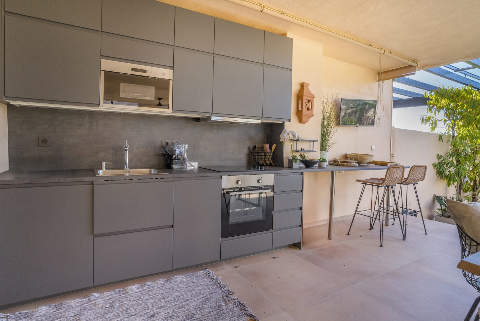 A true highlight of this property is the impressive private terrace, designed to maximise outdoor living. This exclusive space includes a fully equipped outdoor kitchen, a comfortable lounge area, and a private jacuzzi, making it ideal for al fresco dining, social gatherings, or relaxing while enjoying tranquil sunsets and star-filled evenings.