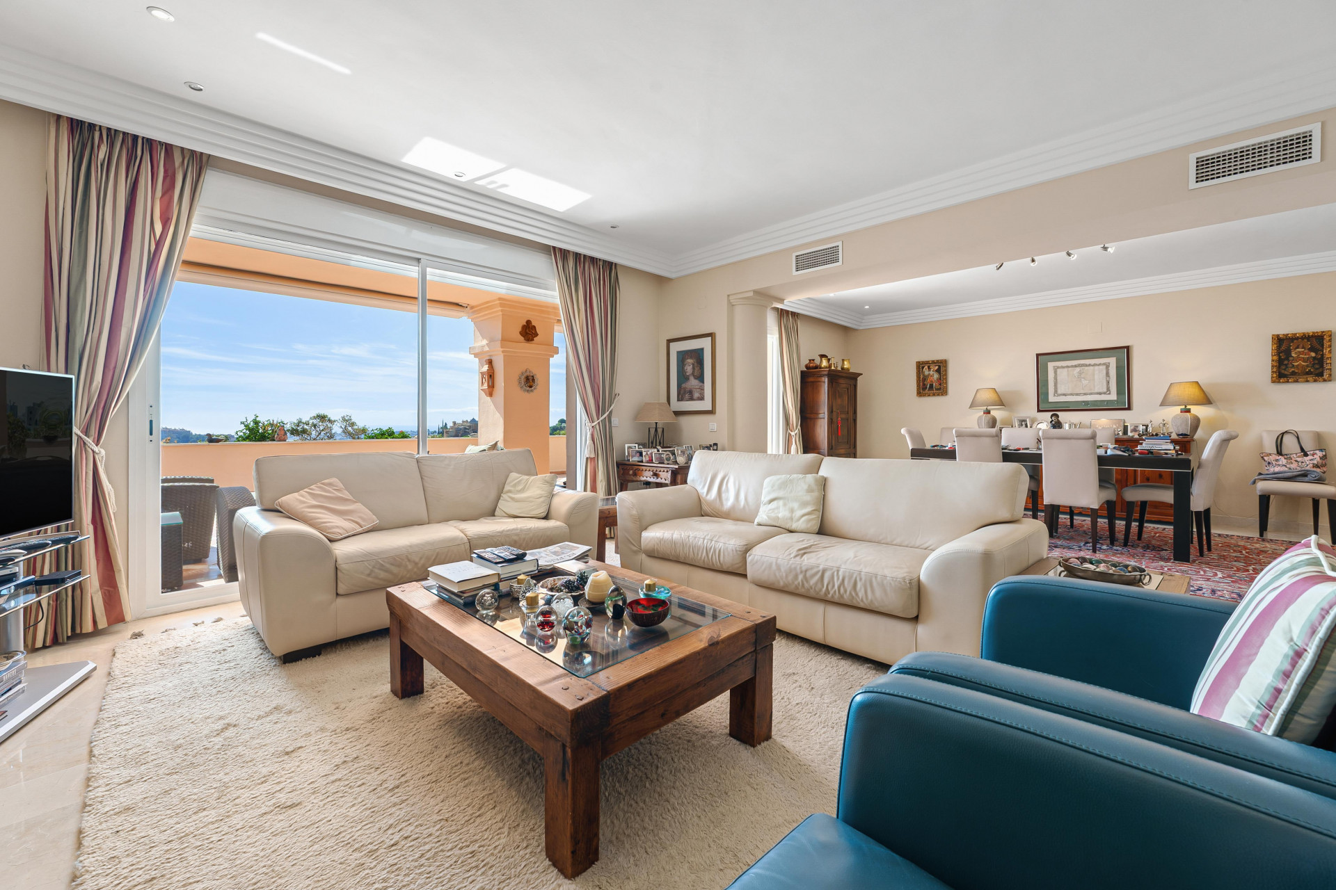 For Sale€1725000 – This impeccably presented three-bedroom duplex penthouse for sale in Albatross Hill, Nueva Andalucia, offers a perfect blend of luxury, comfort, and breathtaking Mediterranean views. Situated within the prestigious gated community of Albatross Hill in the heart of the Nueva Andalucia Golf Valley, this property enjoys 24-hour security and a wealth of resort-style amenities, including beautifully landscaped gardens, three outdoor swimming pools, an indoor heated pool, a gym, sauna, and a tennis court. The location is ideal for golf enthusiasts, with world-class courses such as Los Naranjos and Las Brisas nearby, while the vibrant marina of Puerto Banus and the area’s stunning beaches are just a short drive away.